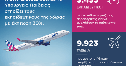 Η SKY express, σε συνεργασία με το Υπουργείο Παιδείας, Θρησκευμάτων και Αθλητισμού, παραμένει πιστή στη δέσμευσή της να στηρίζει την ελληνική κοινωνία και την εκπαίδευση, παρέχοντας και φέτος έκπτωση 30% στα αεροπο...