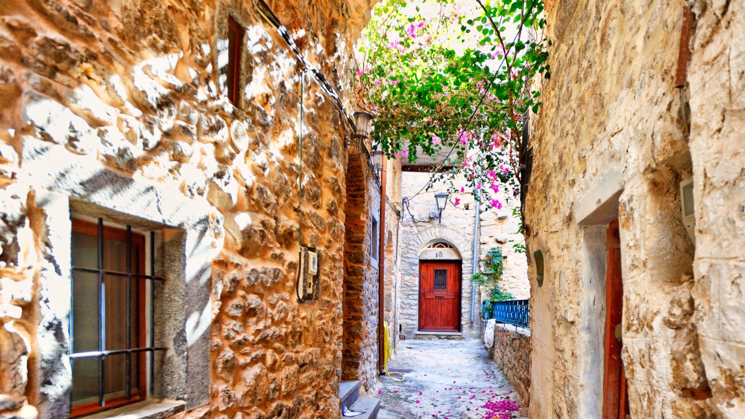Εδώ η Χίος δεν σου συστήνεται επιφανειακά. Σου αποκαλύπτεται αργά, μέσα από πέτρα, μνήμη, πίστη και γη.