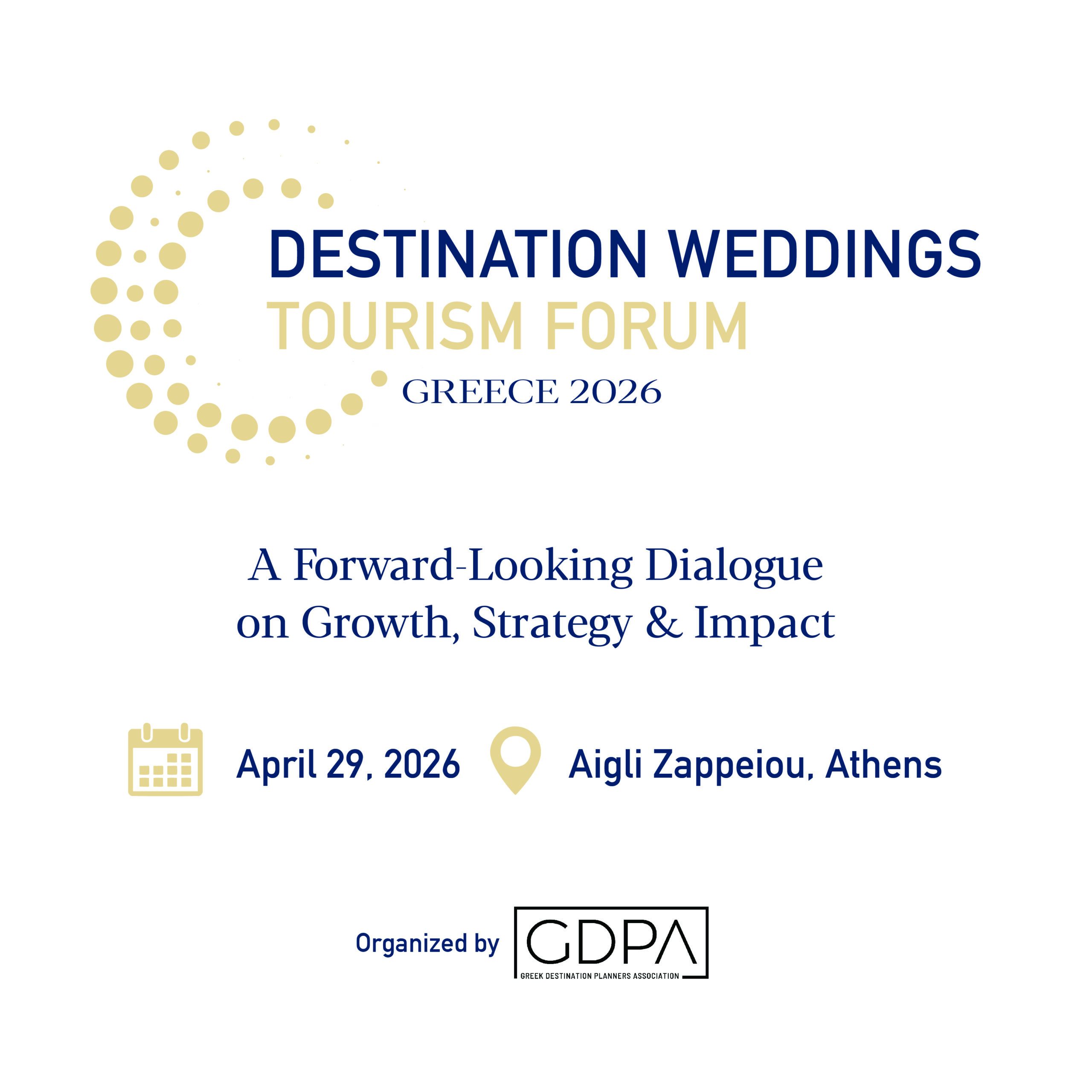 Το Destination Weddings Tourism Forum – Greece 2026 θα πραγματοποιηθεί στις 29 Απριλίου 2026 στην Αίγλη Ζαππείου στην Αθήνα, με διοργανωτή το Greek Destination Planners Association (GDPA), τον επίσημο επαγγελματικό φορέα των διοργανωτών destination weddings στην Ελλάδα.