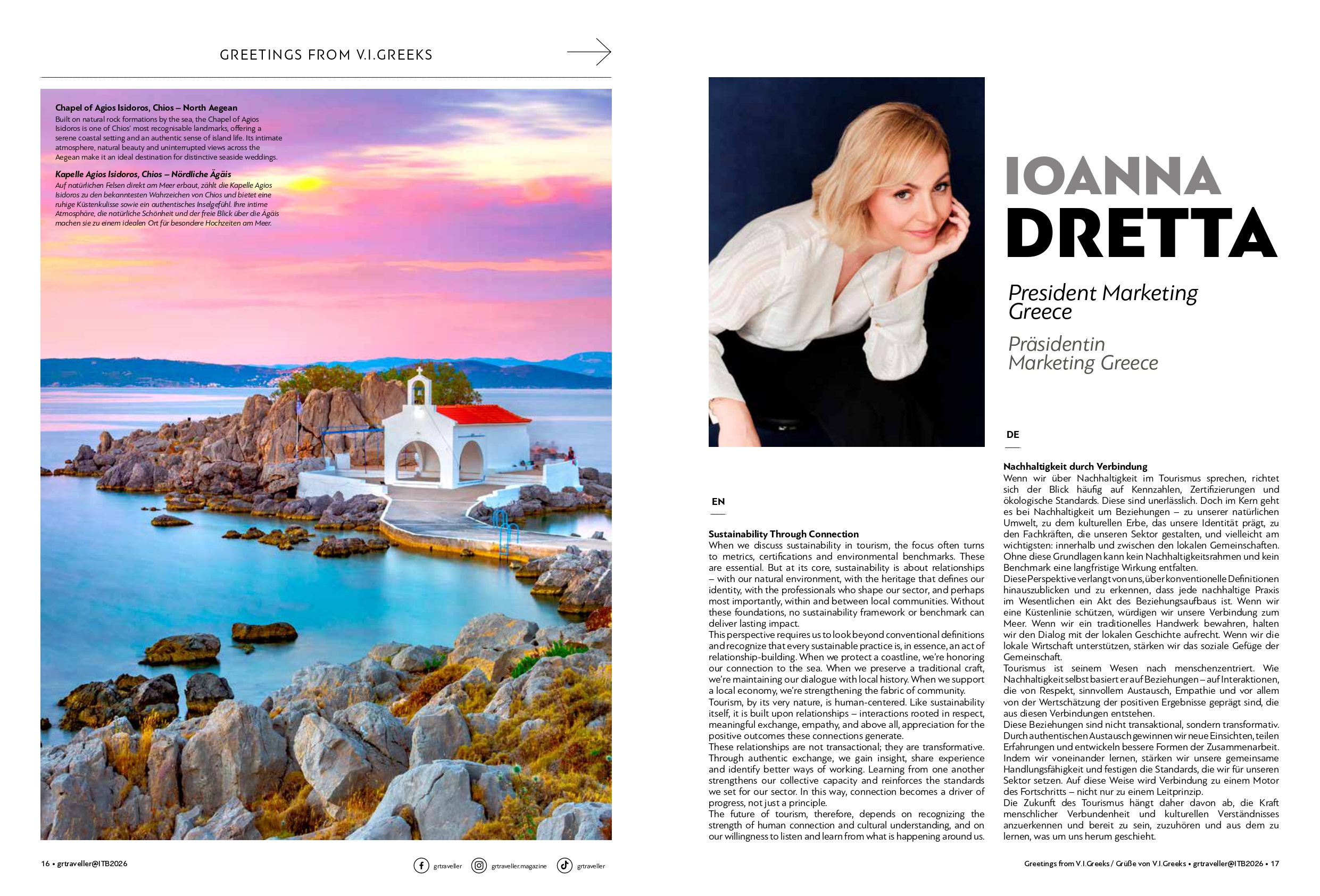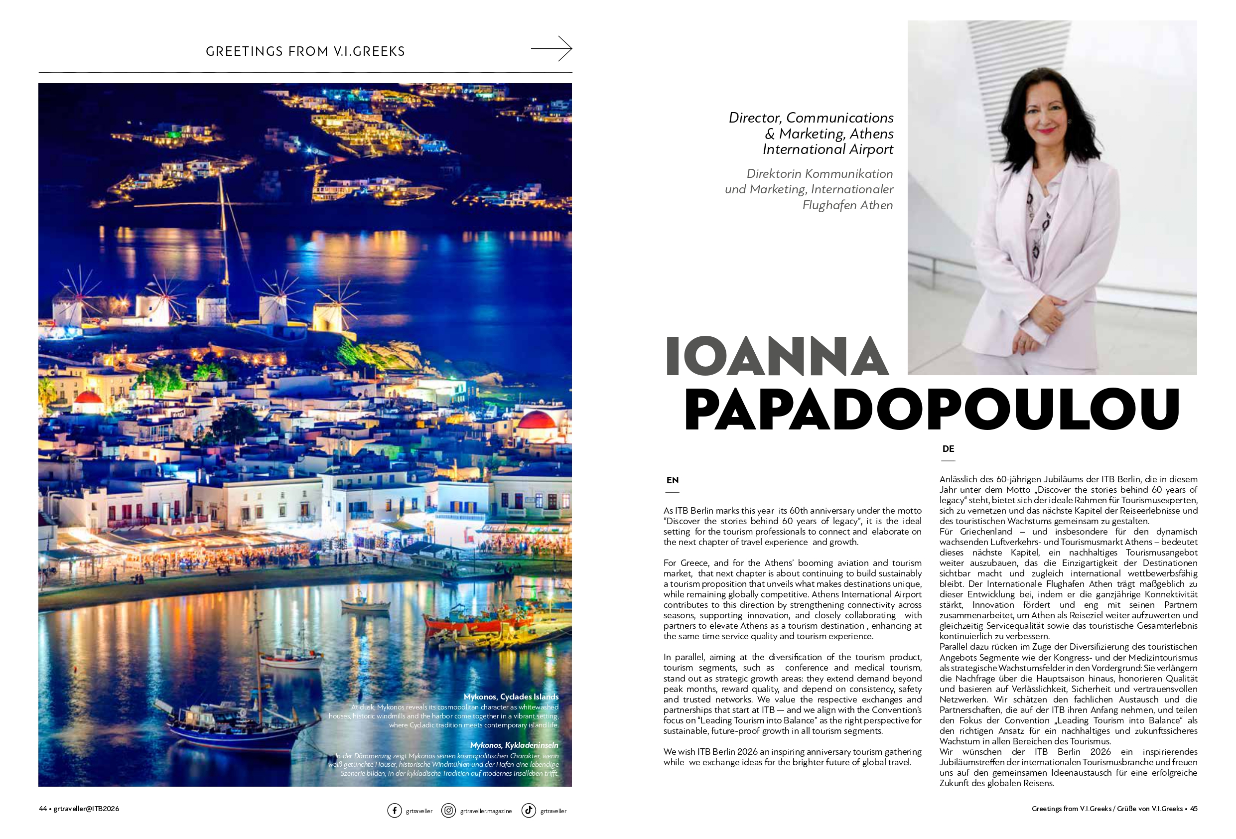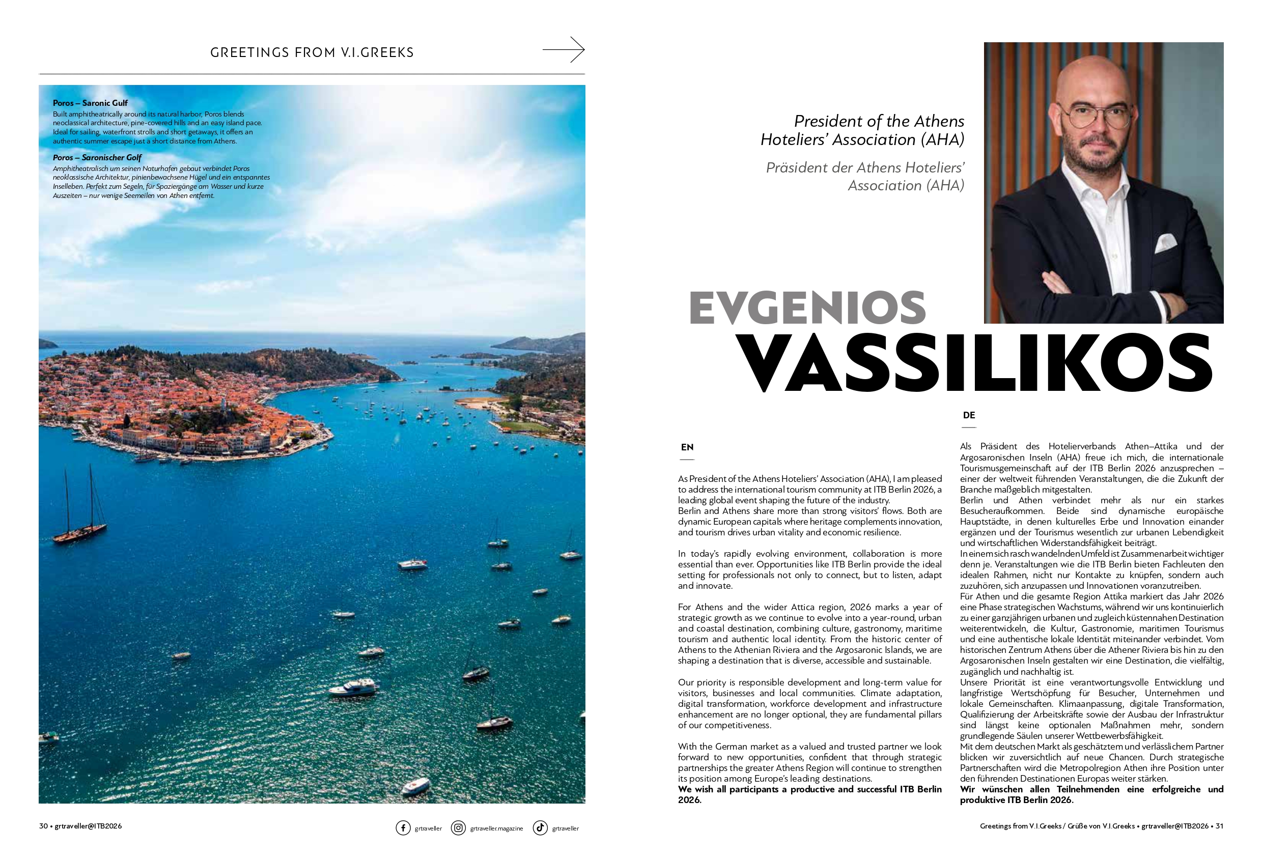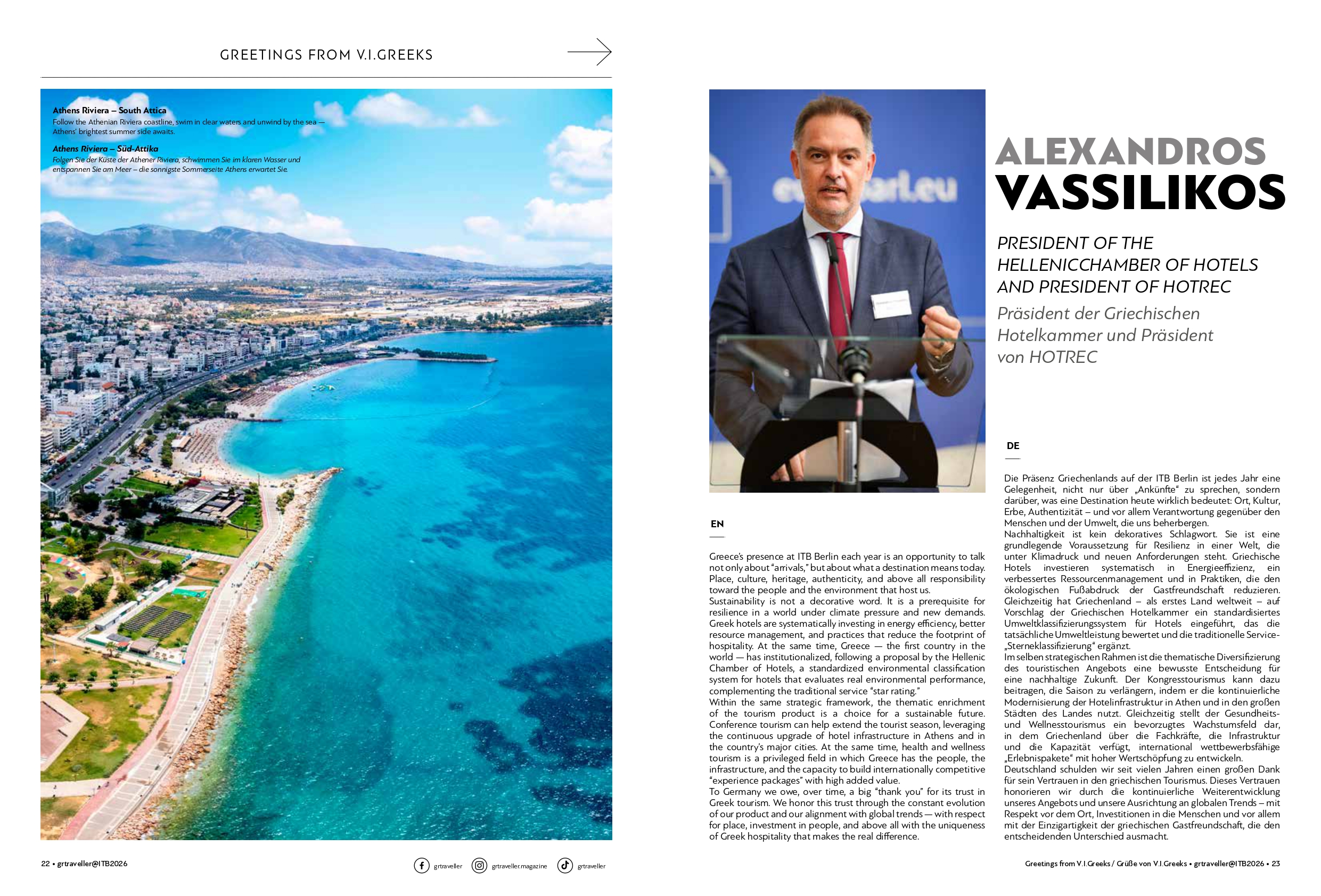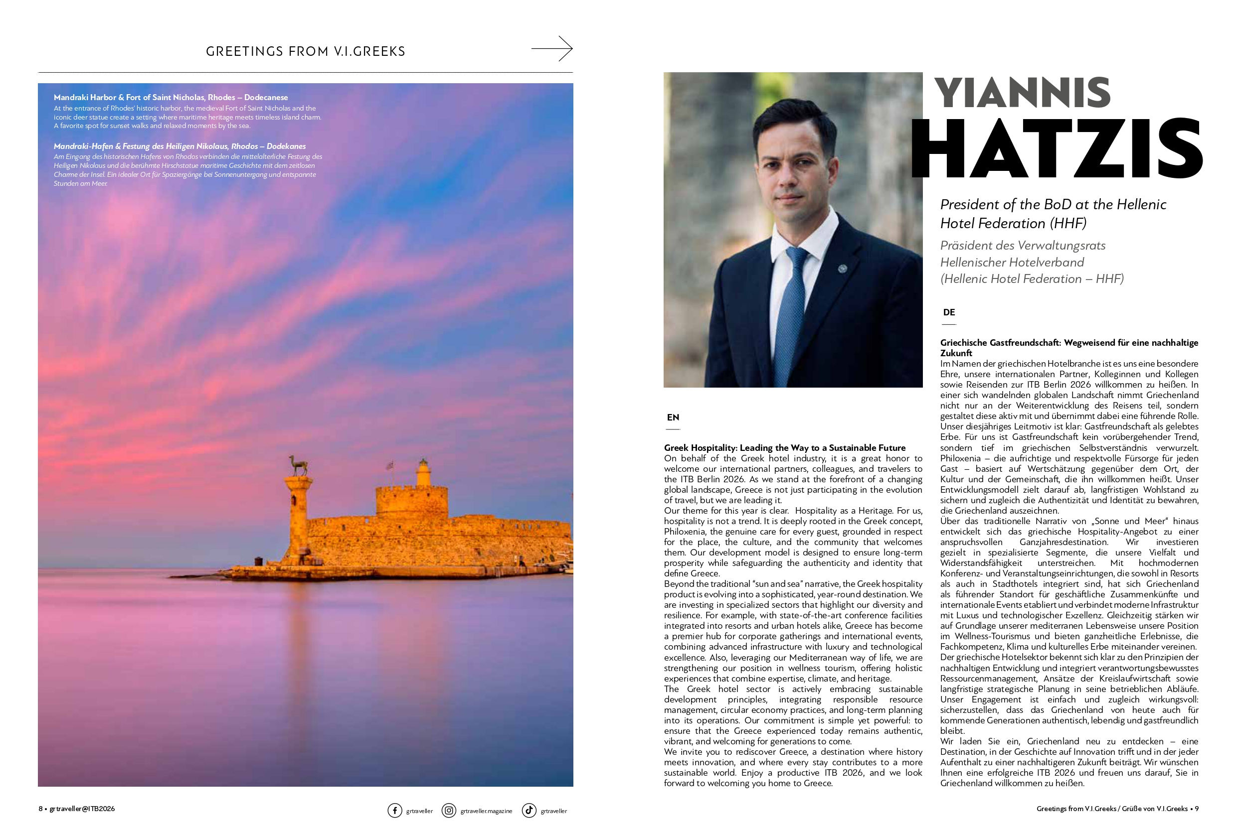 We invite you to rediscover Greece, a destination where history meets innovation, and where every stay contributes to a more sustainable world. Enjoy a productive ITB 2026, and we look forward to welcoming you home to Greece.