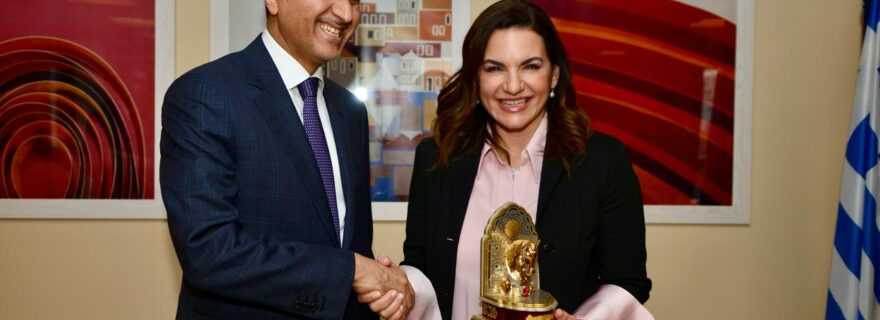 The strengthening and deepening of the cooperation between Greece and Qatar in the tourism sector was the main topic of the meeting between the Minister of Tourism Mrs Olga Kefalogianni and the Ambassador of Greece Mr. Ali Khalfan Al-Mansouri.