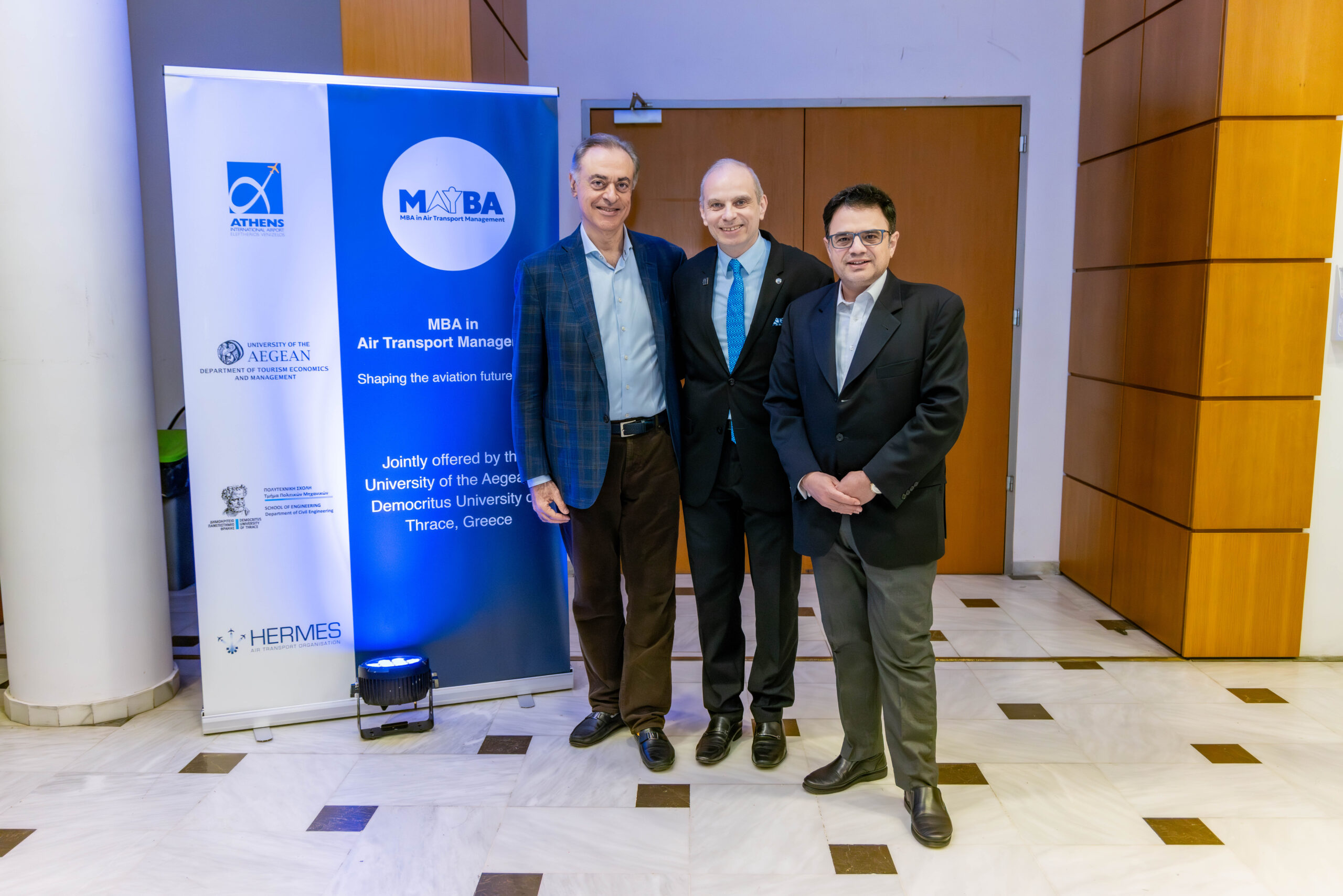 Ο πρώτος χαιρετισμός δόθηκε από τον Καθηγητή Εμμανουήλ Χριστοφάκη, Κοσμήτορα της Σχολής Διοίκησης του Πανεπιστημίου Αιγαίου, ο οποίος δήλωσε: «Η έναρξη του MBA in Air Transport Management (ΜΑΤΒΑ) σηματοδοτεί μια ιδιαίτερα σημαντική στιγμή για το Πανεπιστήμιο Αιγαίου και την εξωστρεφή του πορεία. Πρόκειται για ένα σύγχρονο και δυναμικό πρόγραμμα, που ανταποκρίνεται στις ανάγκες ενός κλάδου με καθοριστική συμβολή στην οικονομία, στον τουρισμό και συγκεκριμένα στο ευρύτερο περιβάλλον των αερομεταφορών. Το ΜΑΤΒΑ ενισχύει τον ρόλο του Πανεπιστημίου ως φορέα παραγωγής γνώσης με άμεση εφαρμογή, καλλιεργώντας δεξιότητες διοίκησης, στρατηγικής και καινοτομίας, και δημιουργώντας γόνιμες γέφυρες συνεργασίας με την αγορά, τους θεσμούς και τη διεθνή ακαδημαϊκή κοινότητα.»