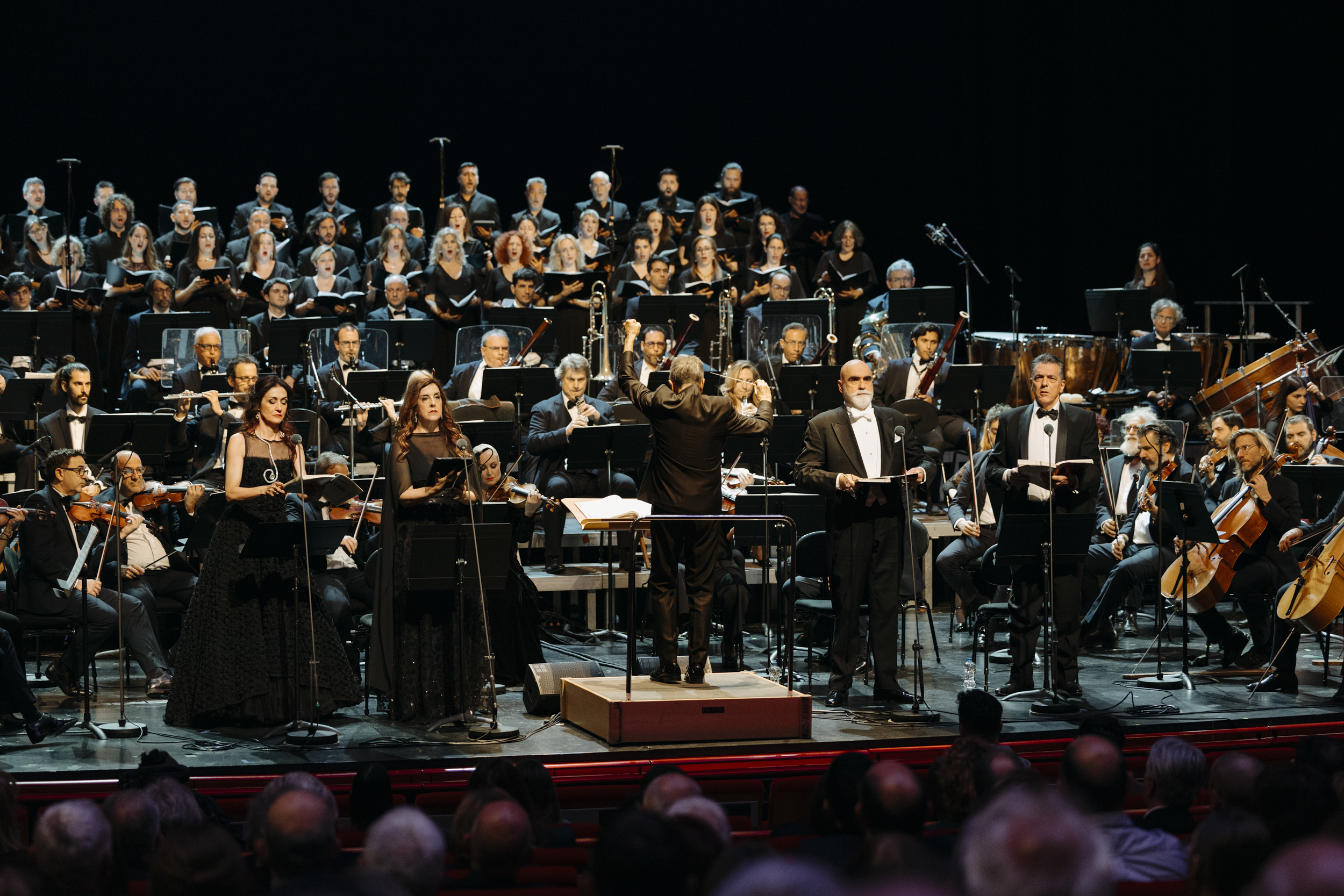 Αυτή η αόρατη αυτοσυγκράτηση – η άρνηση του εγώ, που είναι άλλωστε το δυσκολότερο πράγμα για κάθε μεγάλο μαέστρο – φάνηκε στον τρόπο που χειρίστηκε τις δυναμικές. Στα fortissimo επέτρεψε στην ορχήστρα και τη χορωδία να «ανοίξουν» πλήρως, χωρίς να φοβάται την υπερένταση. Στα pianissimo κρατούσε ένταση, σαν τεντωμένο νήμα που δεν σπάει. Το αποτέλεσμα ήταν ότι κανένα μέρος του έργου δεν ένιωσε αδρανές – ακόμα και οι στιγμές ησυχίας είχαν βάρος.